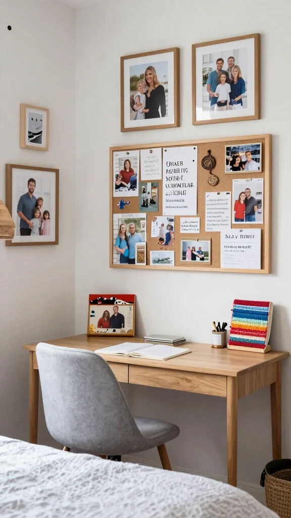 Turn your green bedroom ideas into a cozy reality by weaving in personal touches. Gather family photos, travel keepsakes, and DIY art, then frame them in natural wood or bamboo for a warm, calming vibe. A simple vision board keeps you inspired and on-theme.