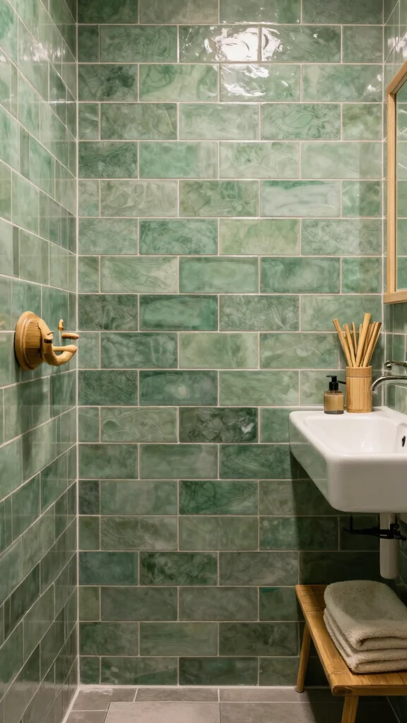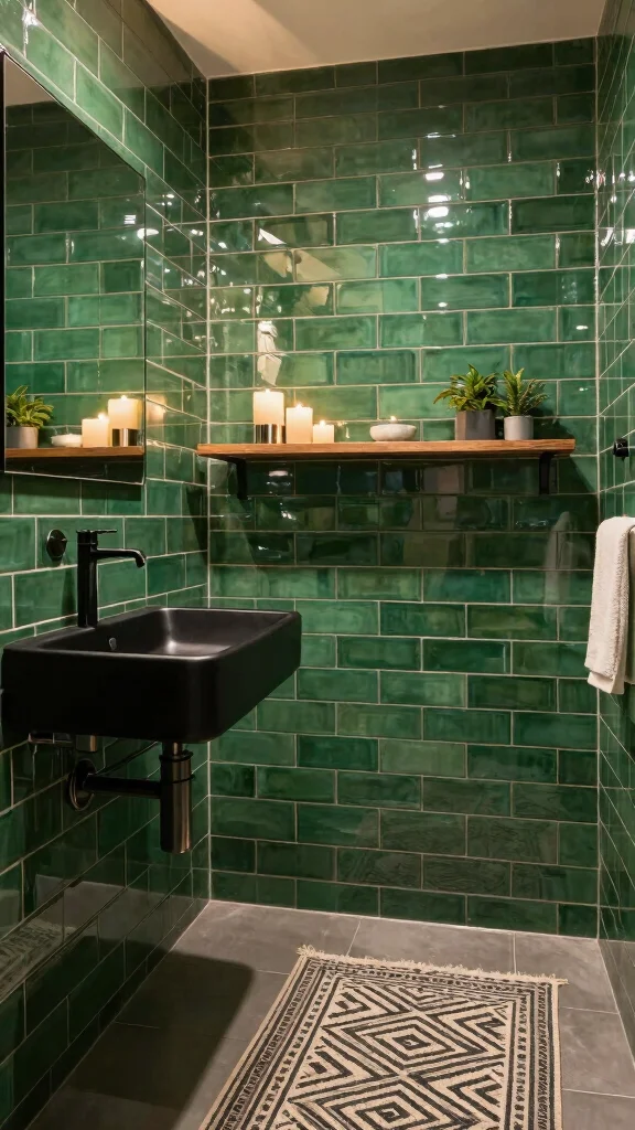 3. Glossy Emerald Tiles for Chic Appeal