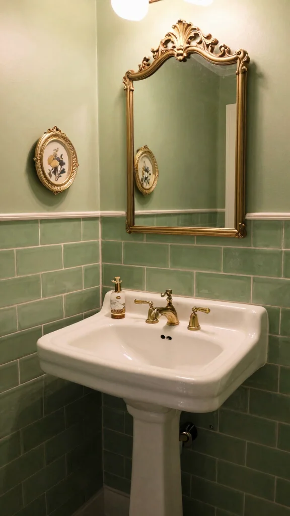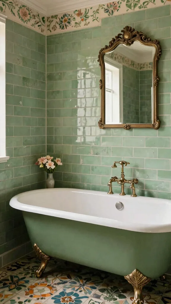 Combining green subway tiles with vintage fixtures can elevate your bathroom to a new level of charm. Think classic pedestal sinks, antique mirrors, and distinctive faucets that bring history and character to the space. The contrast between fresh green tiles and aged fixtures creates a unique balance that tells a story.