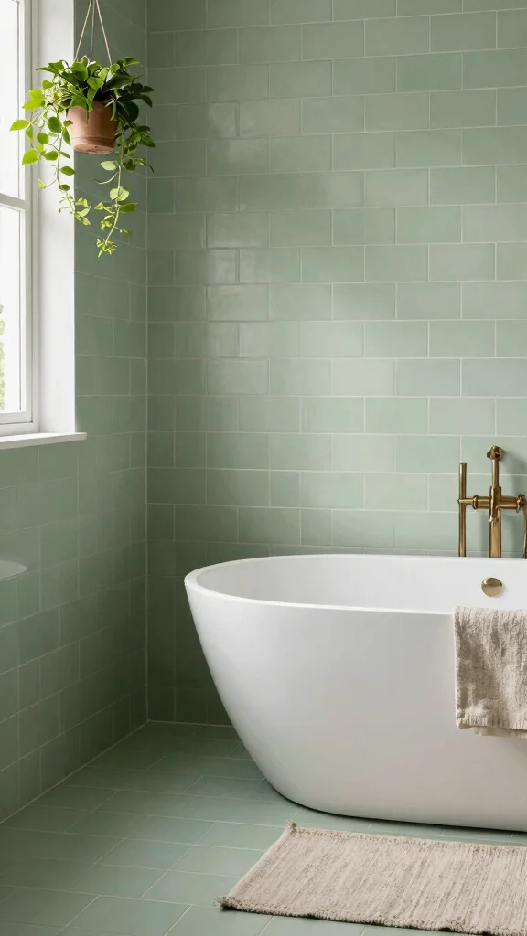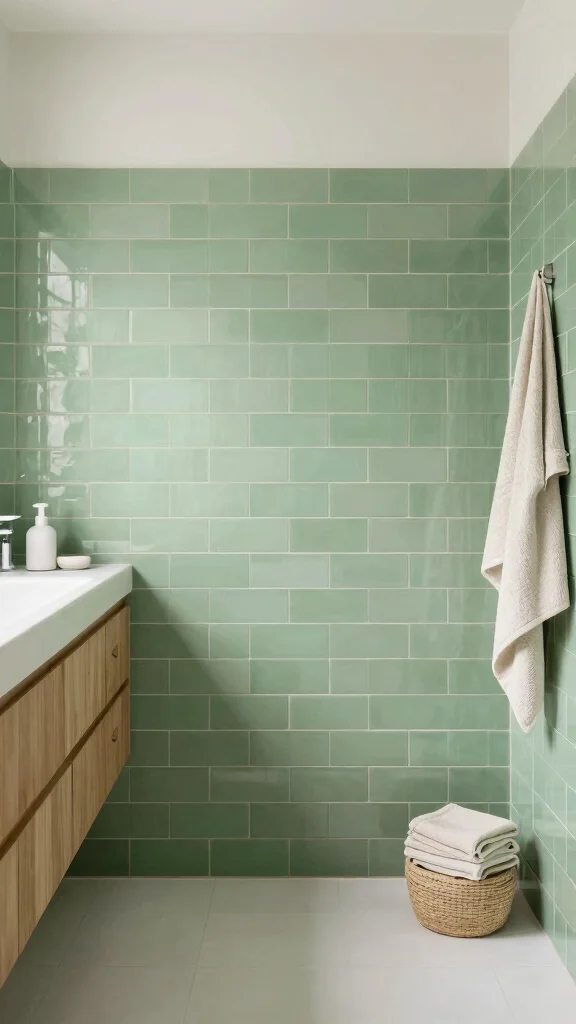 4. Sage Green Subway Tiles for a Calm Atmosphere