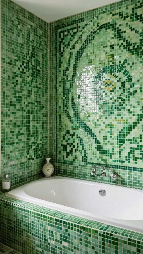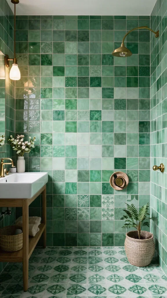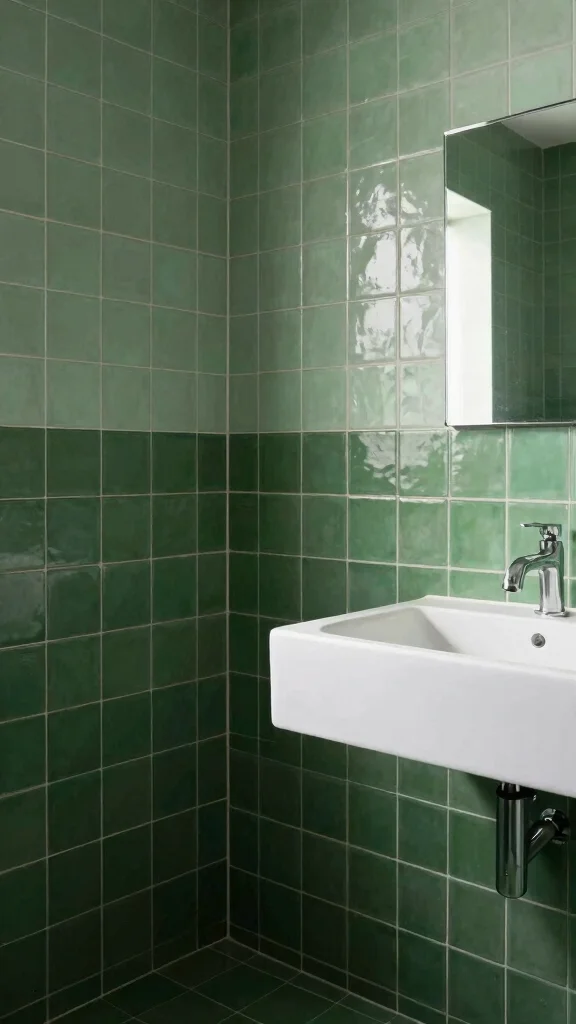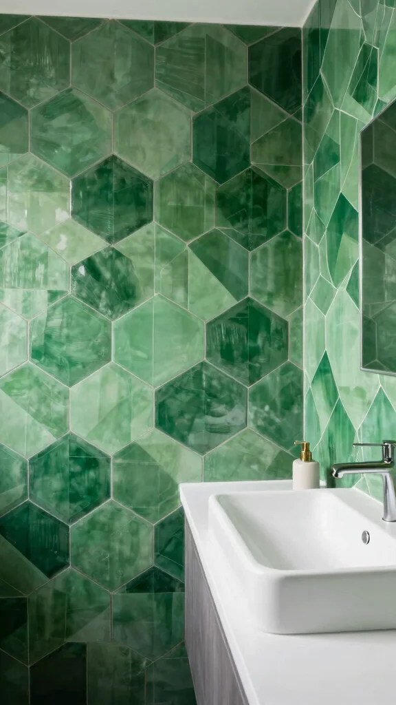 Combine green tiles with contrasting colors for a striking two-tone effect that enhances depth.