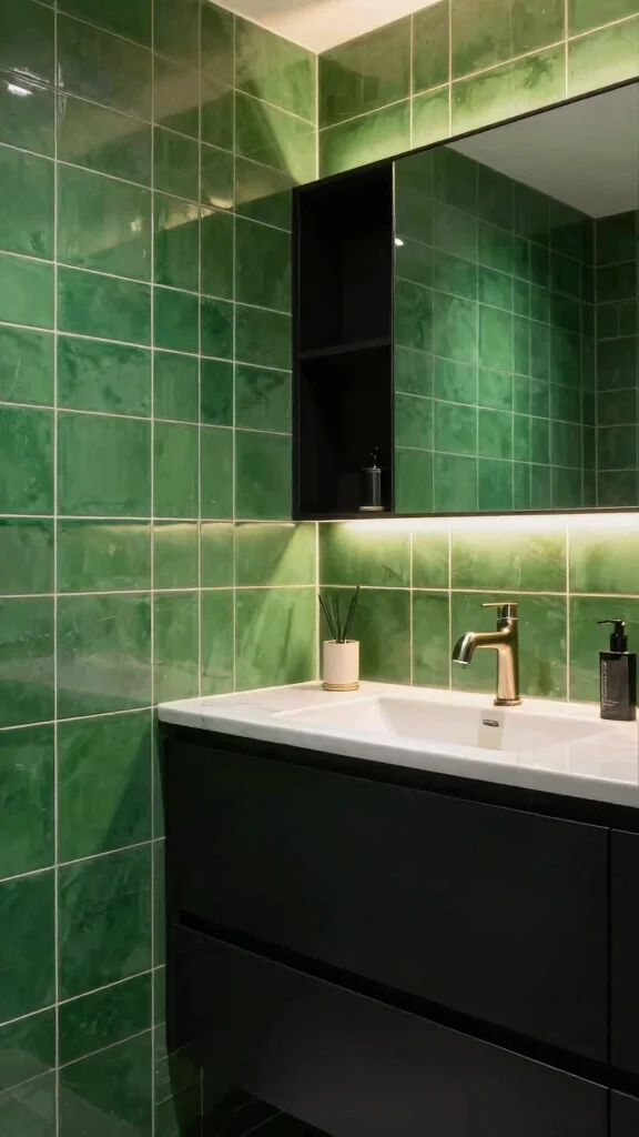 – Pair emerald tiles with white or soft gray for a balanced look.