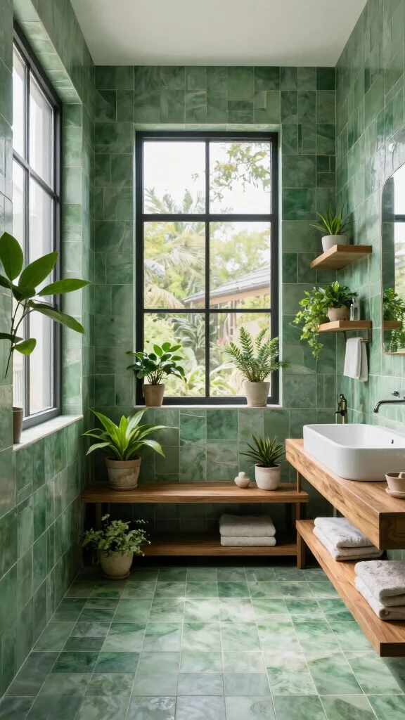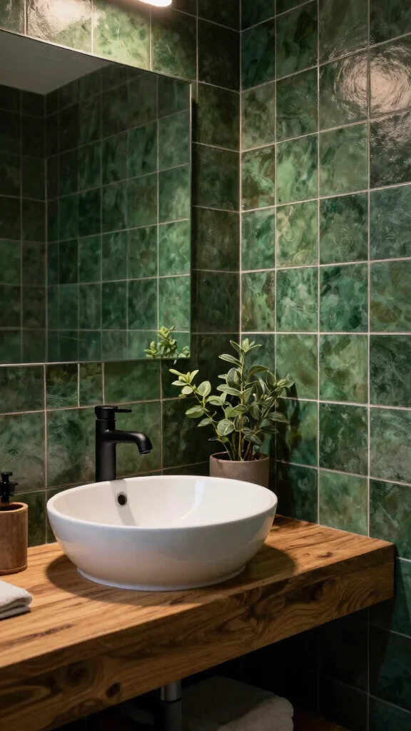 Incorporate vibrant emerald tiles for bold focal points that energize the overall bathroom design.