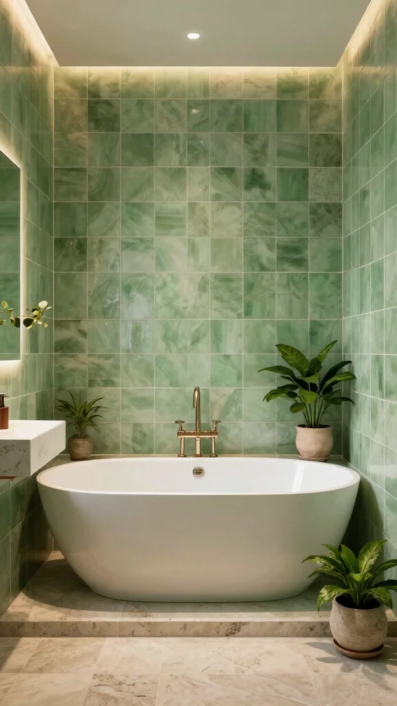 Craft a spa-like atmosphere in your bathroom with green tiles that evoke relaxation and tranquility. Natural shades of green can stimulate a sense of calm, transforming your bathroom into a personal retreat. Consider using larger tiles or a blend of greens and whites for an elegant, soothing design.