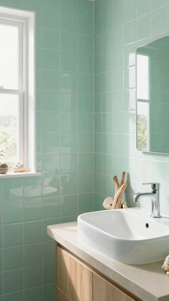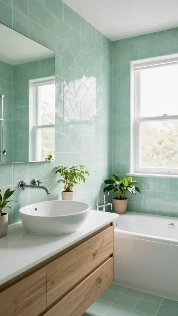 Use mint green tiles to create a refreshing and airy atmosphere, perfect for small bathrooms.