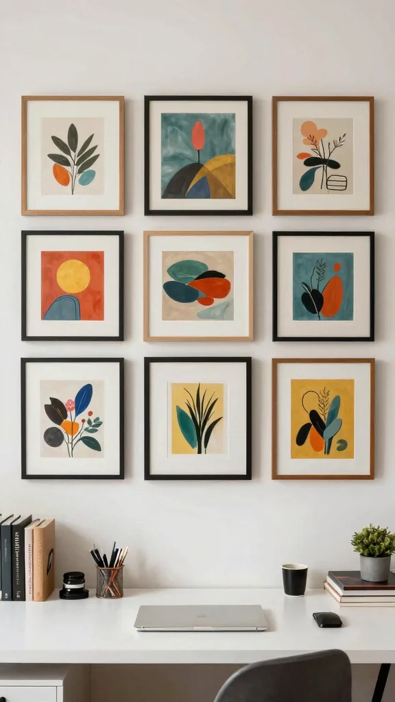 Artwork can serve as a source of motivation and inspiration during your workday. Choose pieces that resonate with your personal style or include uplifting quotes that keep your spirits high. Position these artworks at eye level to ensure they remain in sight, reminding you of your goals and aspirations.