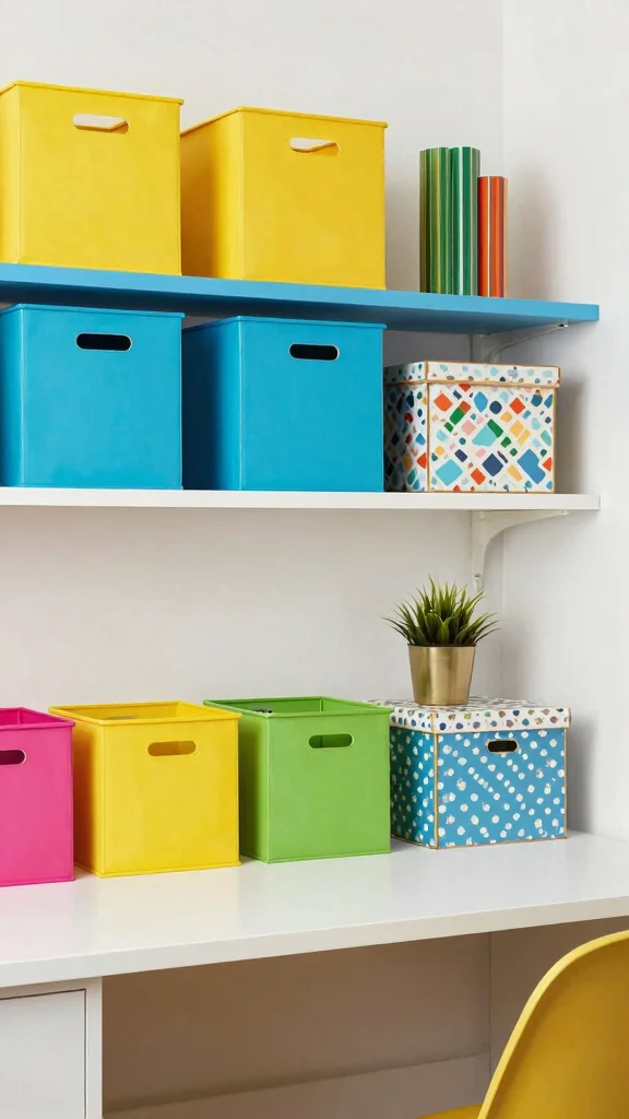 Storage doesn’t have to be dull! Colorful storage solutions can infuse whimsy and vibrancy into your workspace. Bright boxes, patterned bins, or decorative baskets can help keep your supplies organized while also serving as playful decor elements.