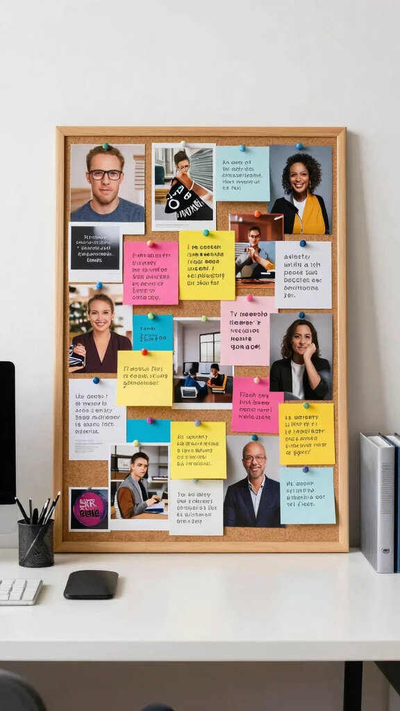 Regularly updating your vision board to reflect new goals can keep your workspace dynamic and inspiring. Use bright, colorful images to create an uplifting vibe that energizes your environment.