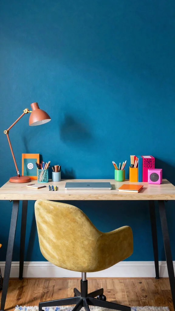 Using an accent wall can introduce a bold color without overwhelming the room. Bright desk accessories like folders or organizers can further enhance the vibrancy of your workspace while keeping it functional.
