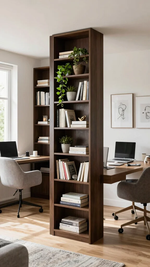 If your space allows, using room dividers can create a sense of separation in a shared home office. Dividers help define personal work zones while maintaining an open feel. You can choose decorative screens, bookshelves, or even curtains to create boundaries that suit both individuals.
