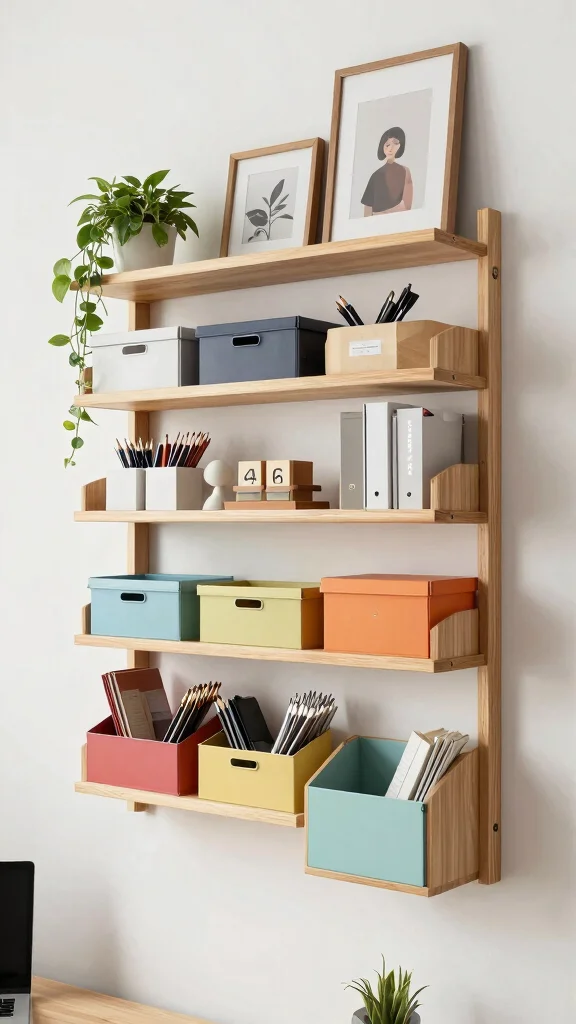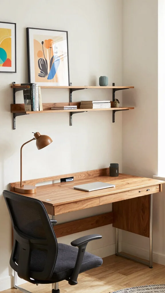 This strategy elevates your workspace while keeping everything within reach, adding both style and function.