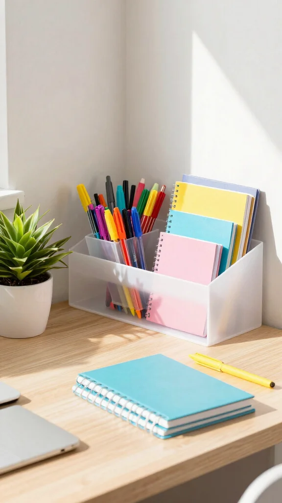 Brightening your workspace with colorful office supplies can significantly enhance your mood. Using vibrant colors makes the space feel cheerful and stimulating. Select binders, pens, and organizers in hues that reflect your personality for a cohesive look.