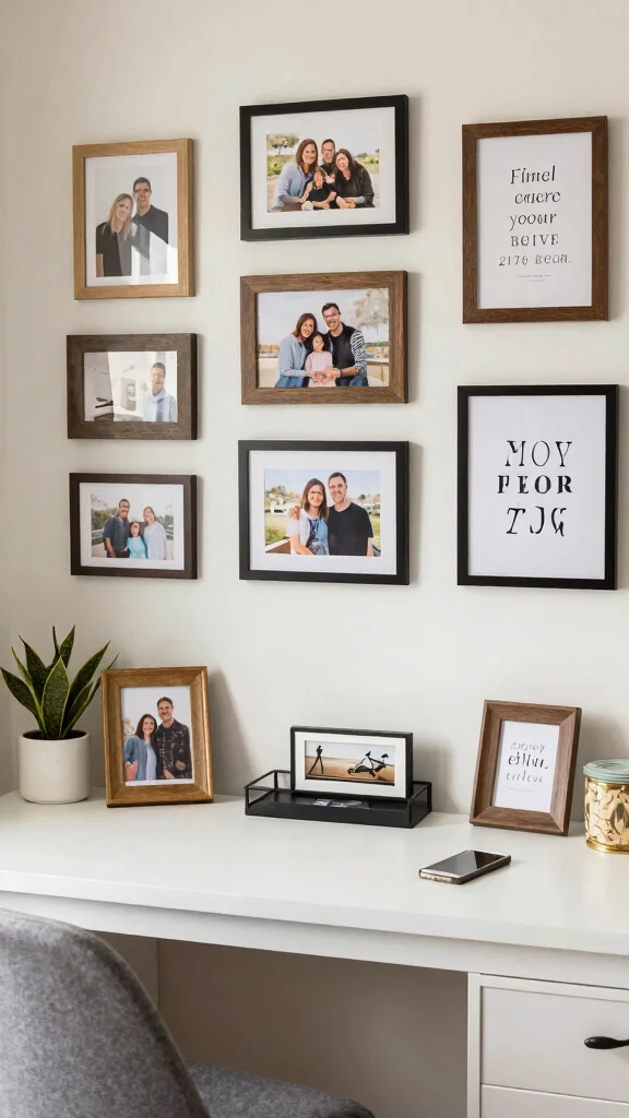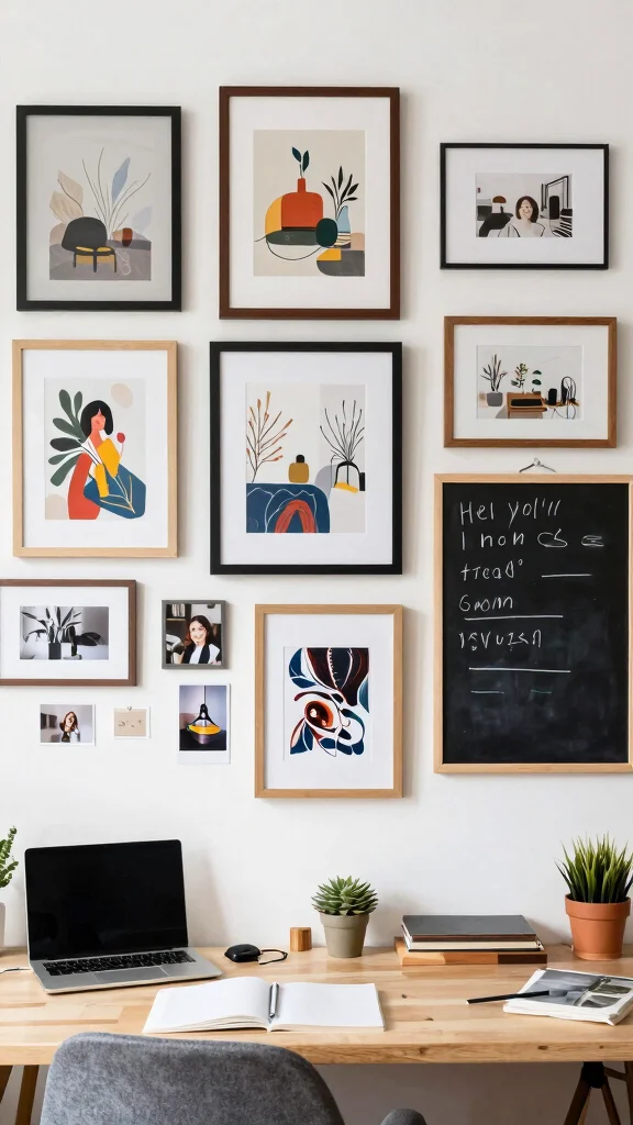 Mixing different frame styles can create an eclectic vibe, while functional art pieces can enhance the workspace. Art not only decorates but also stimulates creativity.