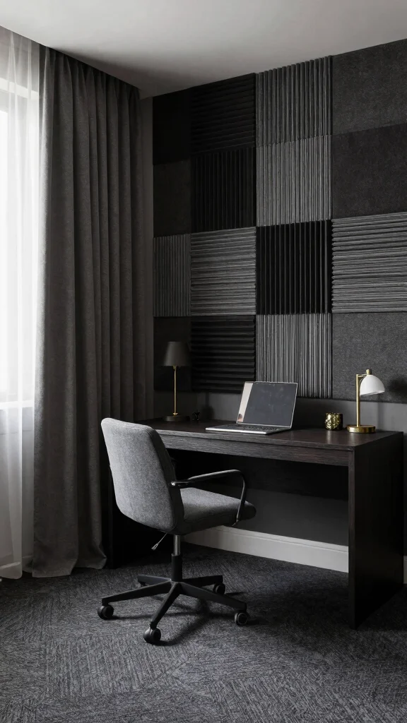 Thick rugs can help muffle sounds from the floor, while heavy curtains reduce outside noise. Acoustic wall panels offer stylish solutions for maintaining a serene workspace.
