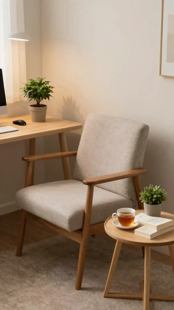 An accent chair enhances your workspace’s inviting atmosphere, making it more enjoyable.