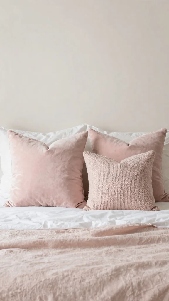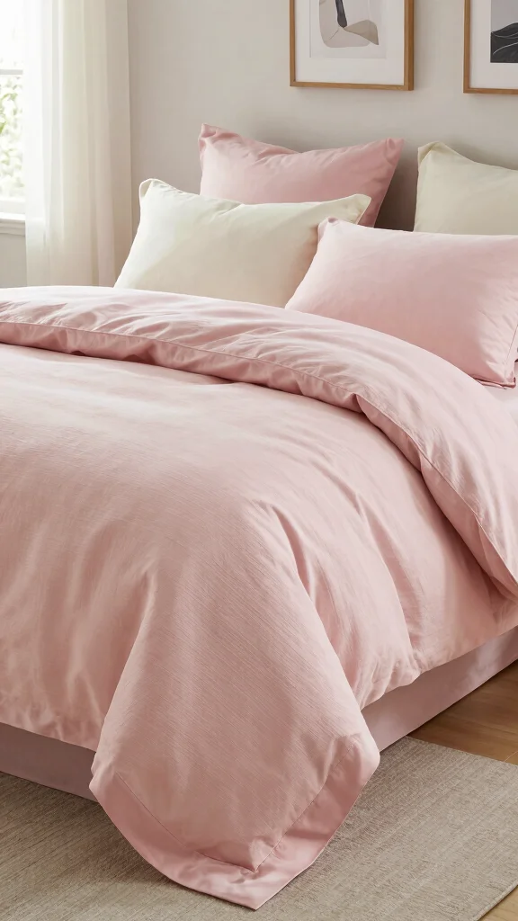 Elevating your bedding starts with the addition of a light pink textured duvet cover that introduces depth to your space. The right materials, like waffle cotton or linen, can create an inviting look that’s perfect for minimalist aesthetics. Pairing this with silky soft sheets in either lighter or darker pink shades adds a beautiful contrast, enhancing the design’s appeal. Accessorize with plain white or cream pillows to balance the soft tones and maintain a cohesive look. Layering different fabrics not only captures visual interest but also makes your bed irresistibly inviting. The textured duvet will catch the light, contributing to a warm and cozy ambiance.