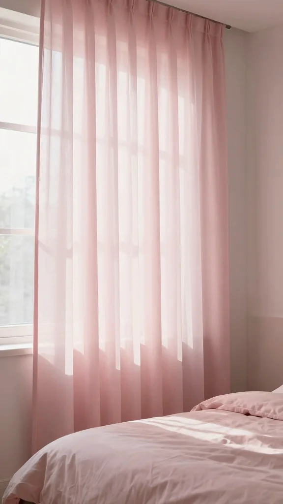 Light pink curtains beautifully filter soft natural light into your room while maintaining your color scheme. Opt for sheer fabrics that allow sunlight in but provide privacy when needed, softening the overall look of your minimalist bedroom. Hanging the curtains higher than the window frame creates an illusion of taller ceilings, maximizing the sense of space. The flow of the fabric adds a softness to the room, enhancing its inviting atmosphere. This simple touch can transform the overall feel of your space, making it warm and welcoming.