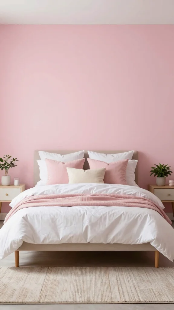 If you’re aiming for a bolder statement, consider painting an accent wall in a light pink hue. This approach can add depth and dimension to your room without overwhelming your design, especially when paired with light pink bedding. A painted wall serves as the perfect backdrop for your bed, allowing your bedding to shine. Opt for a soft pastel shade that complements your existing decor while maintaining a fresh and airy feel. Incorporate neutral rugs or furniture pieces to maintain balance and harmony in the room. This simple change can significantly enhance the overall aesthetic, transforming your space beautifully.