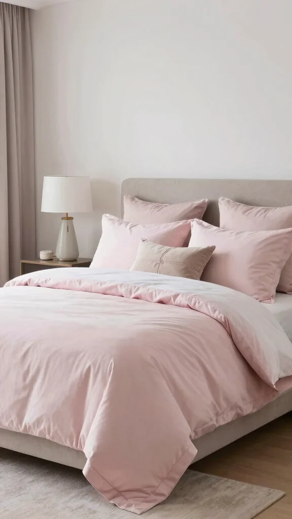Creating a serene, minimalistic bedroom with light pink bedding can elevate your space into a cozy retreat.