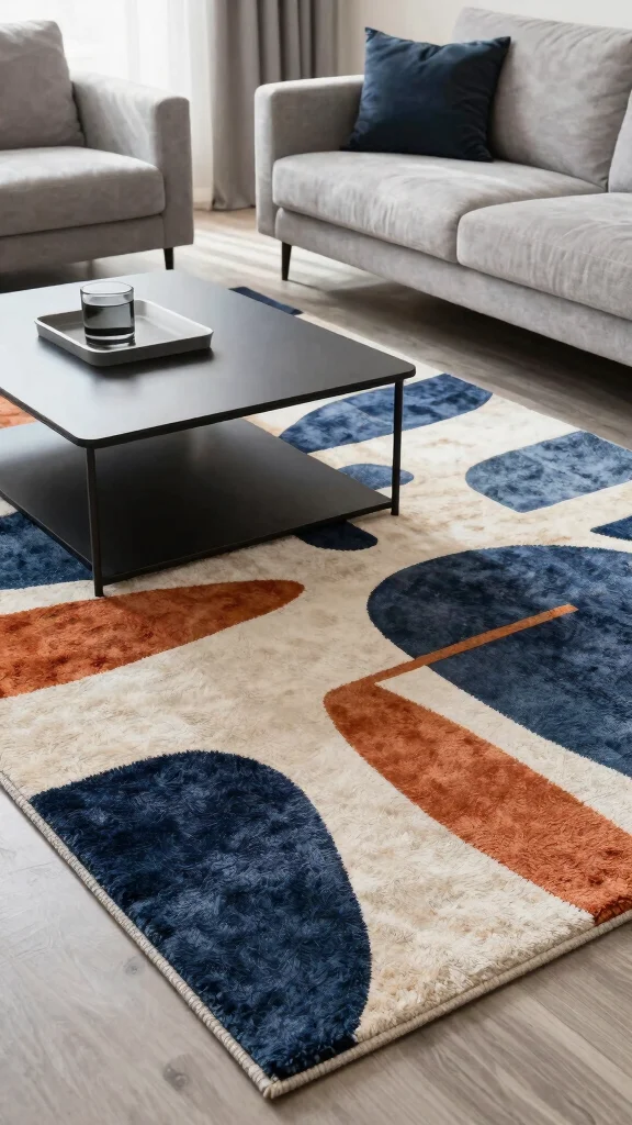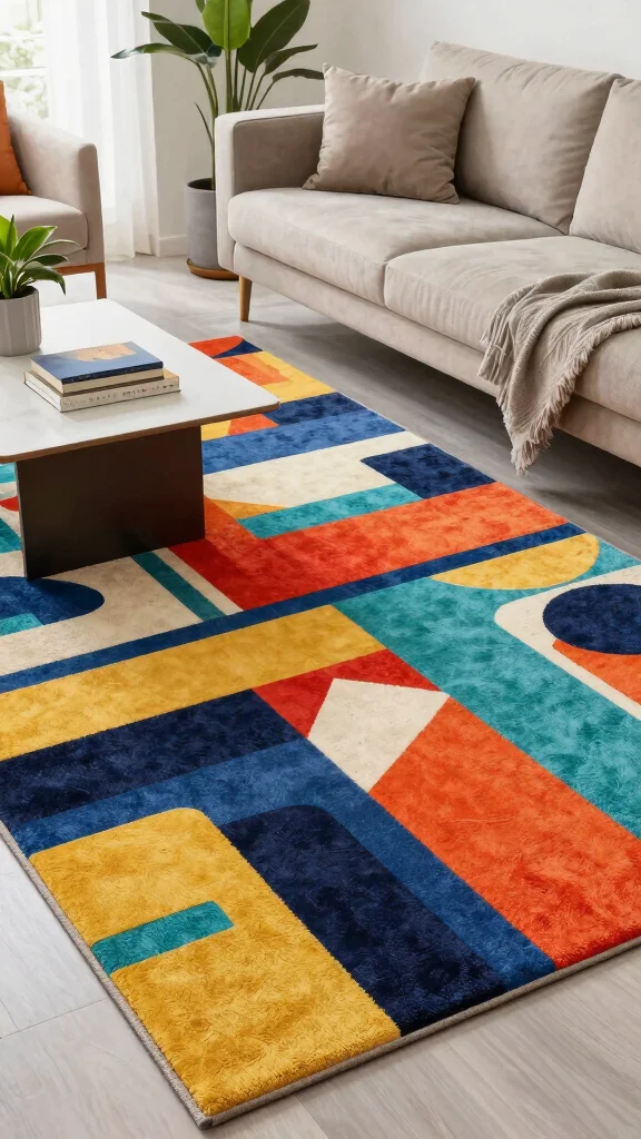 – Pair geometric rugs with minimalist furniture for a bold contrast.