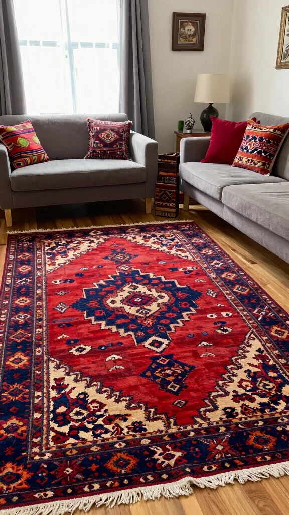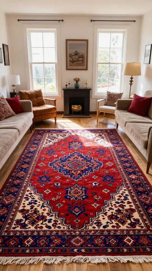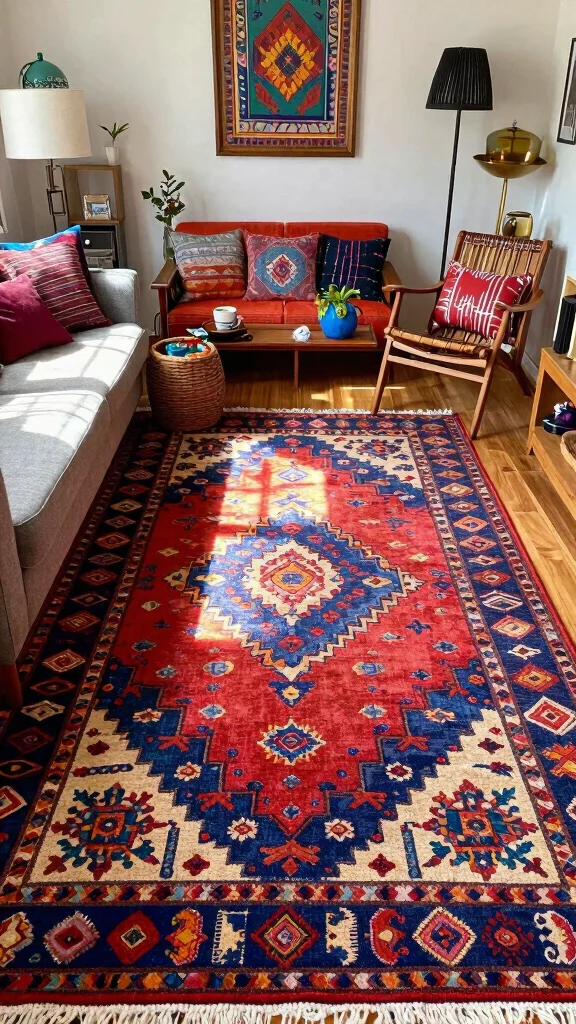 – Balance vibrant rugs with simpler decor to avoid overwhelming the room.