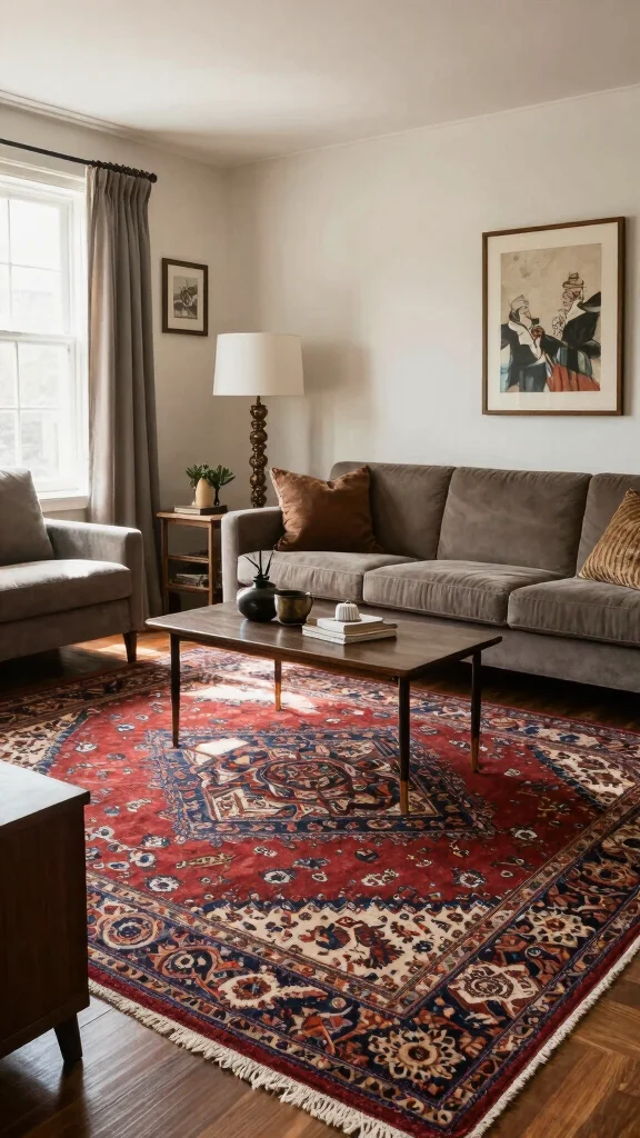 Combining vintage and modern styles creates a dynamic living room that reflects your personal taste. Area rugs serve as the perfect bridge between these two worlds, allowing you to blend elements seamlessly into your decor. For example, a vintage rug paired with contemporary furniture creates a striking contrast that adds warmth and character to your space.