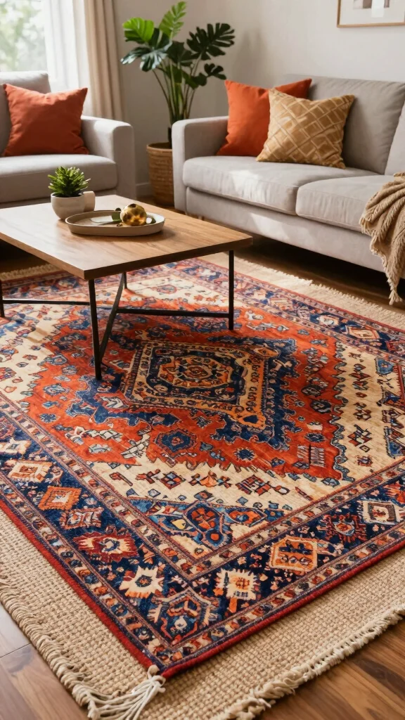 – Pair earthy rugs with wooden tables or stone decor for continuity.