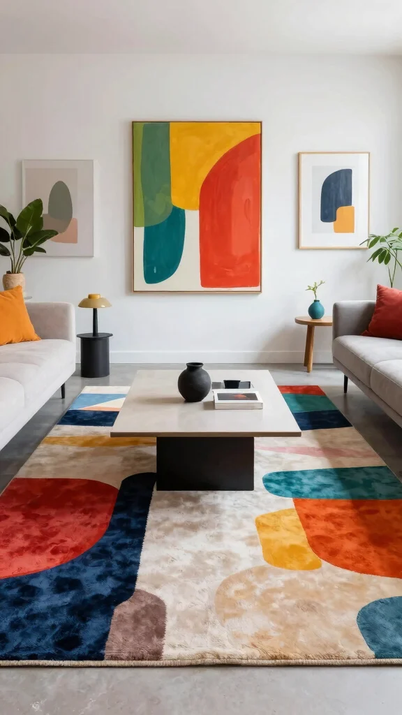 Modern abstract rugs are ideal for those looking to make a bold statement in their living room. With striking designs and vibrant colors, these rugs can elevate your space and serve as conversation starters. Perfect for contemporary homes, they add an artistic flair to your decor.
