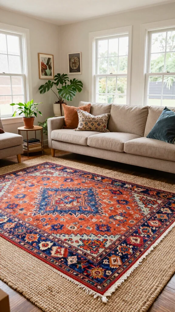 Layering rugs enriches your living room’s decor, showcasing your creativity while making the space uniquely yours.