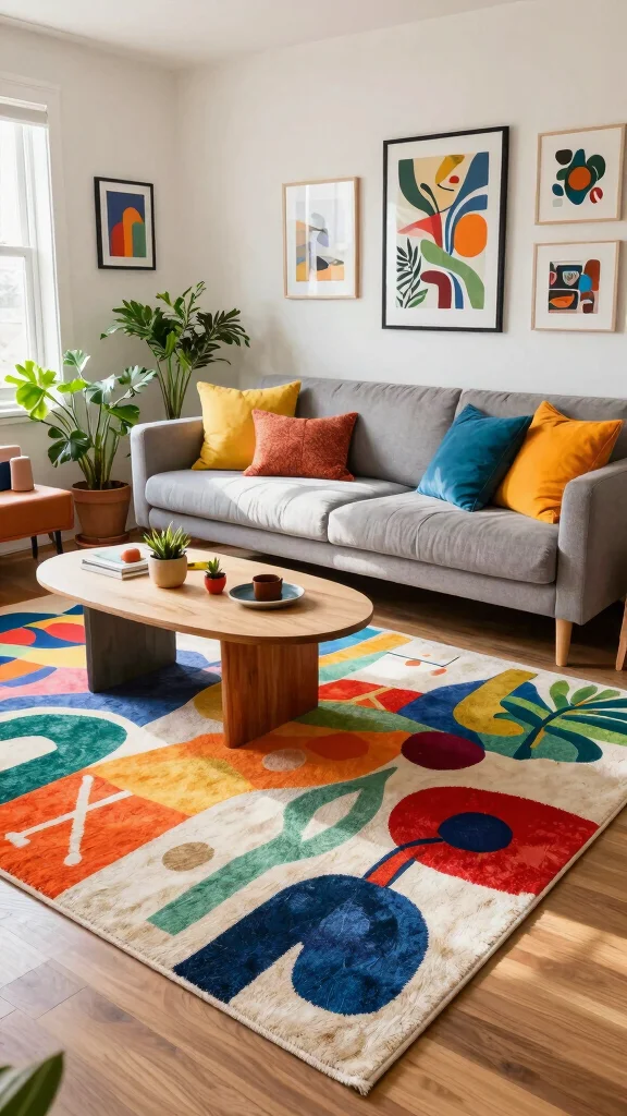 Embracing a bold abstract rug can transform your living room into a stylish, artistic space that inspires creativity and self-expression.