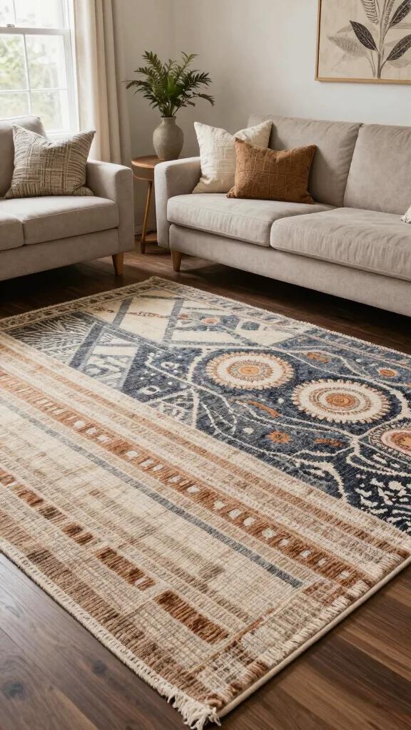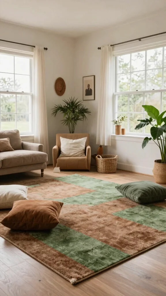Earthy color palette rugs can ground your living room, tying together various design elements to create an inviting and cohesive space.