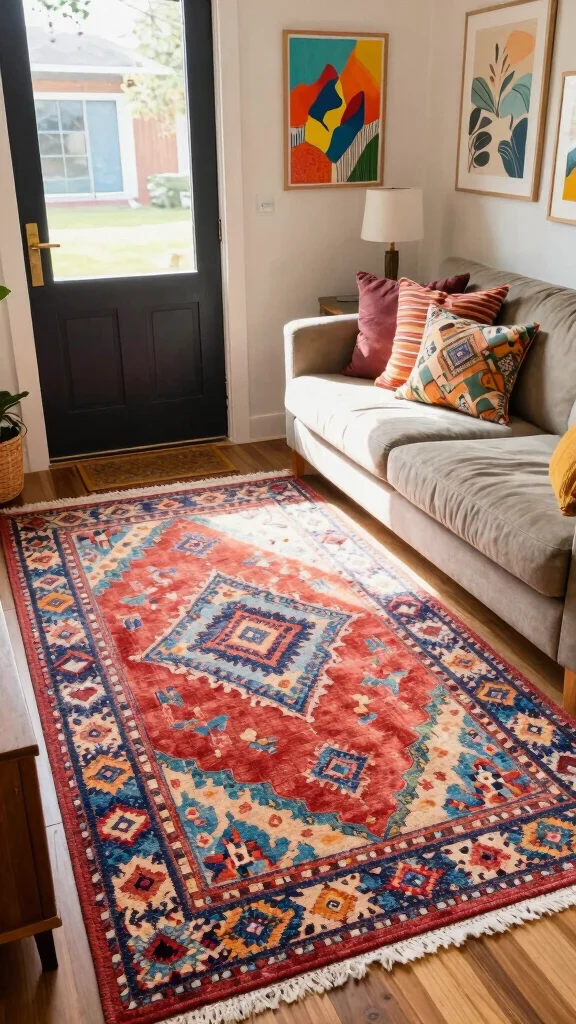 Patterned entrance rugs add both fun and functionality to your living room. Positioned near doorways, these rugs can set a vibrant tone for your home while helping keep dirt and debris at bay. Imagine a colorful patterned entrance rug welcoming guests, enhancing the overall charm of your space.