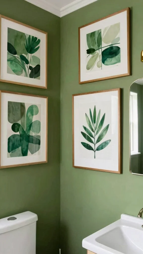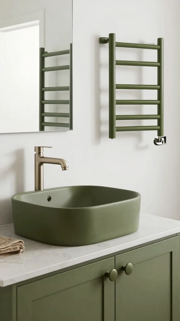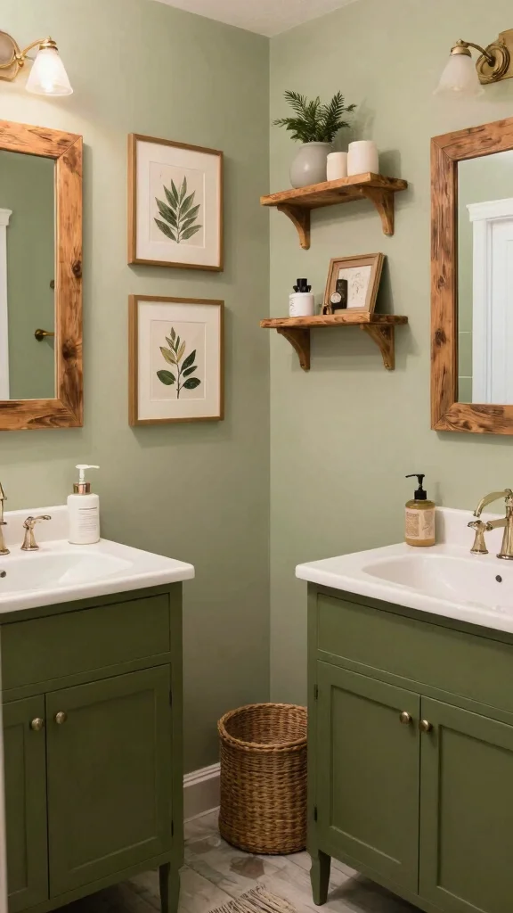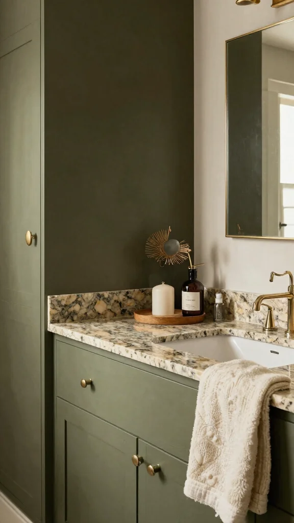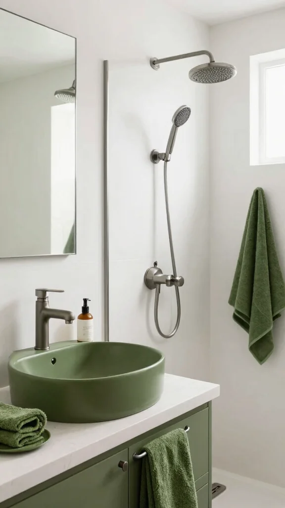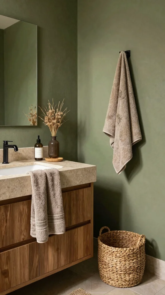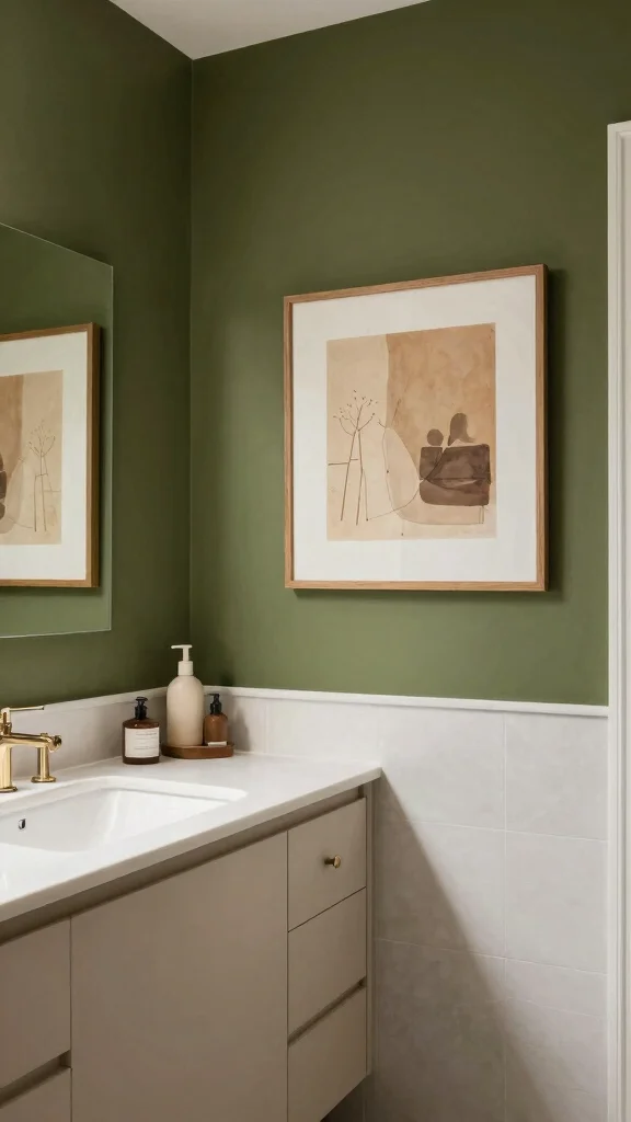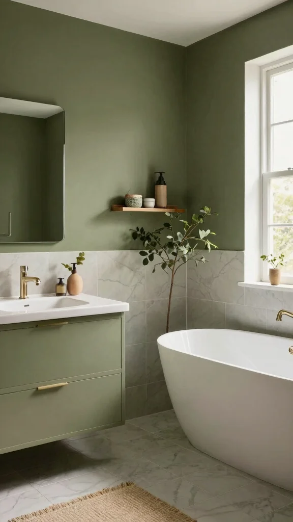 An olive green accent wall can transform your bathroom into a stylish retreat, providing a beautiful backdrop for relaxation.