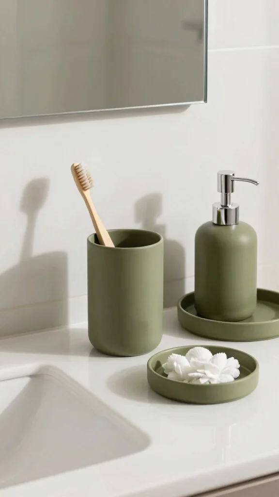 Sometimes, it’s the small details that create a big difference. Incorporating olive green in subtle ways around your bathroom can cultivate a cohesive atmosphere. Think about small items like olive green toothbrush holders, soap dispensers, or decorative trays that polish the space without overwhelming it.