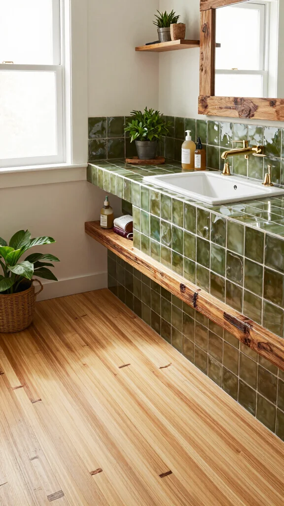 Opt for eco-friendly materials like bamboo or recycled glass to create a sustainable bathroom environment.