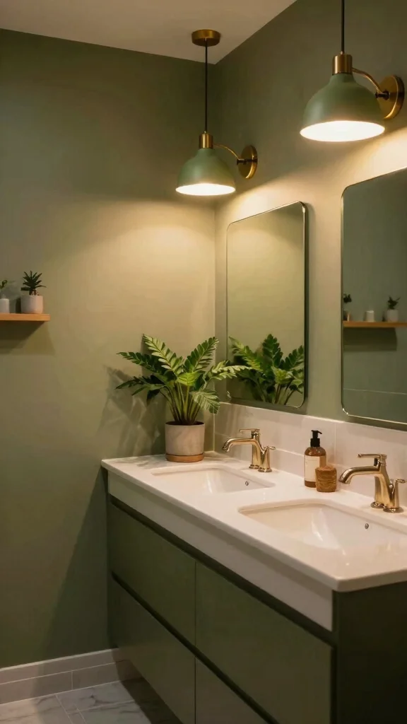 Integrating olive green lighting can turn your bathroom into a tranquil haven, merging functionality with style.