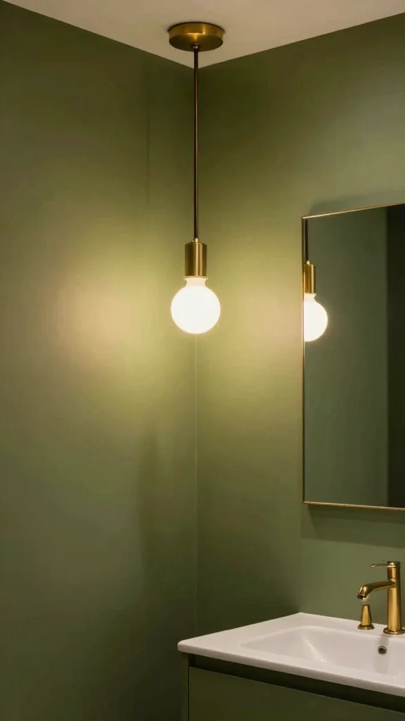 Lighting plays a crucial role in setting the mood of your bathroom. Choose warm-hued bulbs to soften the olive green tones and create a cozy atmosphere. Consider installing dimmable lights for versatility, allowing you to adjust the brightness based on your needs. Pendant lights or wall sconces with a natural material finish can enhance the earthy vibe.