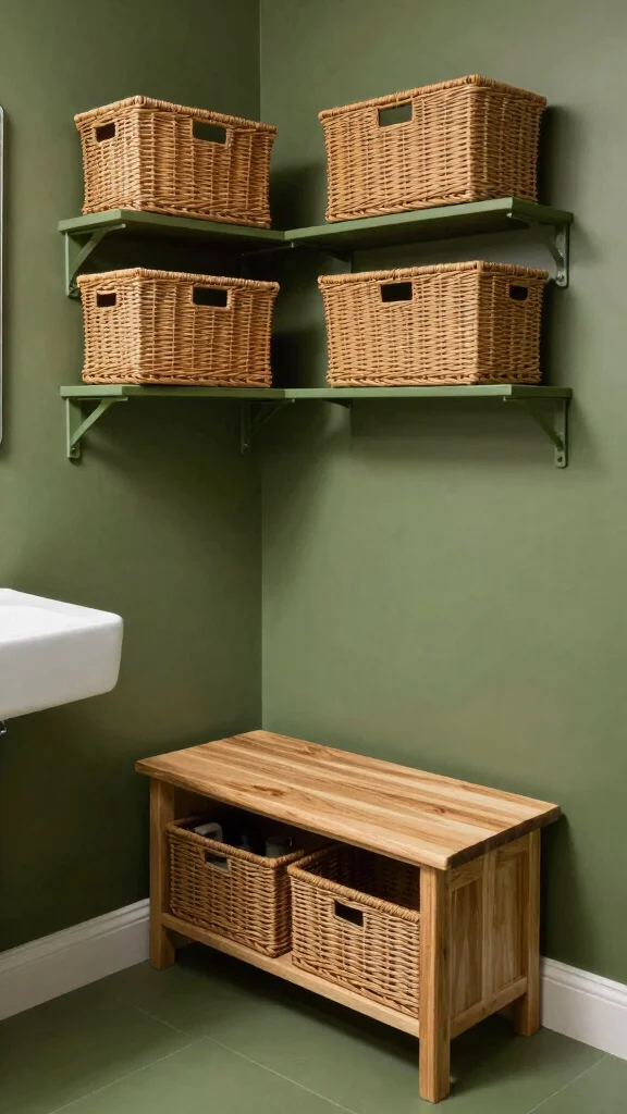 Effective storage solutions are essential for maintaining an organized bathroom. Creative options can enhance your design while keeping clutter at bay. Eco-friendly materials, such as wicker baskets or reclaimed wood, can beautifully tie sustainability into your olive green decor.
