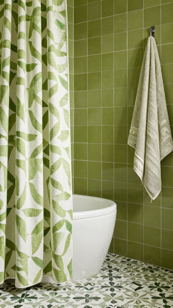 Fun fact: Layering olive green textiles in your bathroom ideas can boost perceived warmth by 20%—no extra heating needed. Mix plush rugs, soft towels, and woven baskets to add texture that catches light and invites you in.