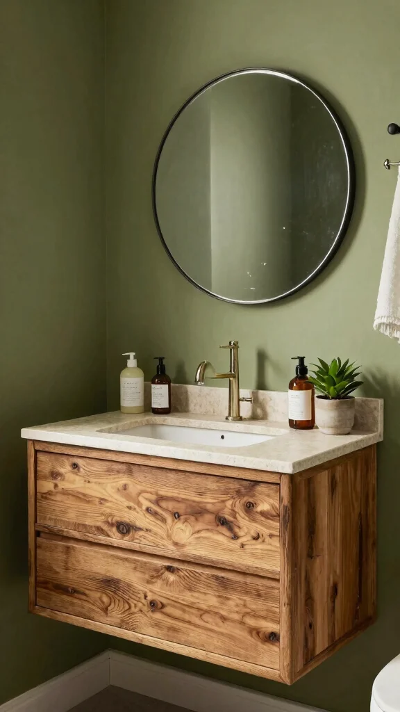 Consider the materials used in your bathroom decor. Opt for natural materials such as wood, stone, or even jute. Sustainable choices not only enhance the olive green theme but also bring a touch of nature into your space. For example, a reclaimed wood vanity can perfectly complement olive green walls.