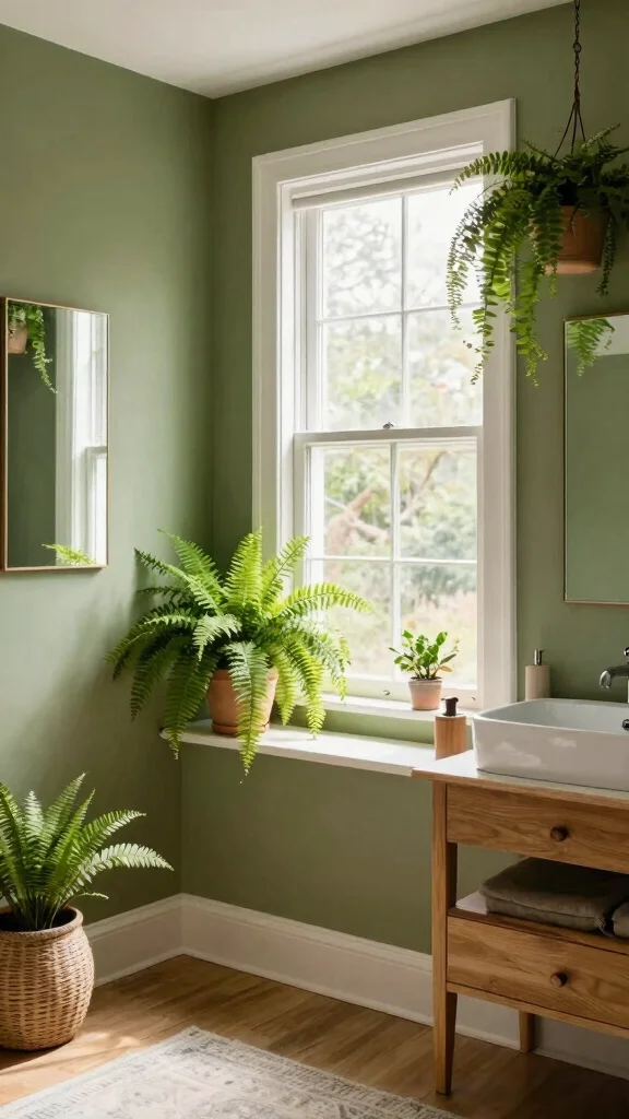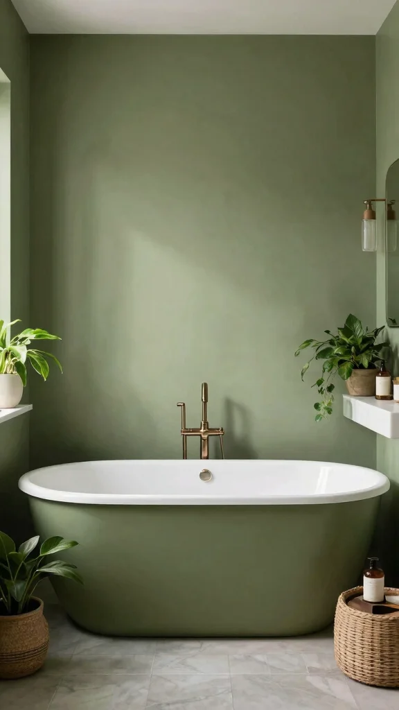 – Olive Green Walls: Using olive green paint can create a soothing backdrop that enhances natural light and warmth in your bathroom.