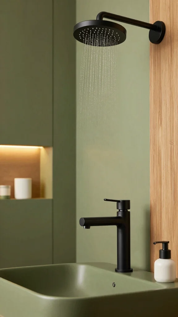 When selecting fixtures, think about their finish. Brass or matte black fixtures work beautifully with olive green decor, adding a touch of sophistication. Make sure to select eco-friendly options where possible. Look for fixtures with a low flow rate to ensure water conservation while still providing functionality.