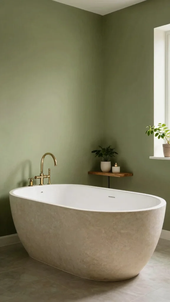 A statement bathtub can serve as a stunning focal point in your olive green bathroom, combining relaxation with style. Freestanding tubs in organic shapes beautifully complement the natural aesthetic, providing a luxurious feel. Selecting a tub with an earthy finish enhances the olive green backdrop, creating a serene spa-like environment.