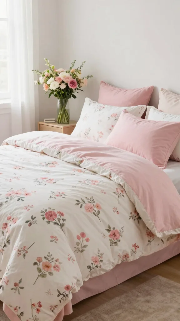 Easily adapt your pink and white bedding to seasonal changes with simple accents. In spring and summer, opt for light floral prints and soft pastel tones, while in fall and winter, richer hues and heavier fabrics like flannel can provide warmth. Accessorizing with seasonal decor enhances the vibe—think pastel throw pillows for spring and rich maroon throws for winter.