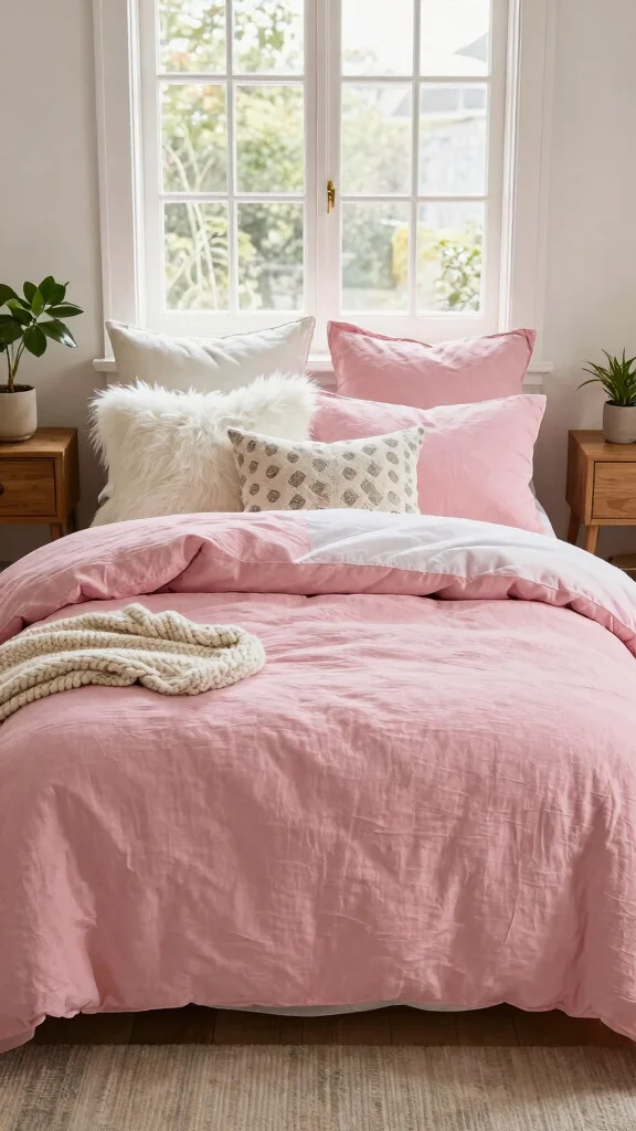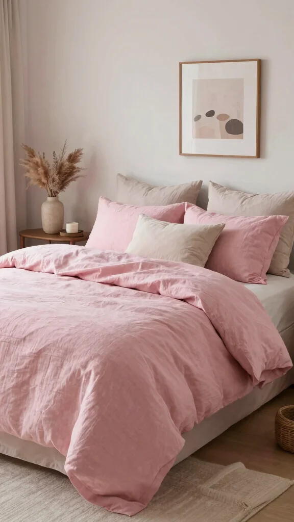 Think about your bedroom’s decor style. Pink linen bedding can fit into several aesthetics, from bohemian to minimalist. For a relaxed vibe, choose soft, muted tones paired with neutral accessories. If you lean towards a bohemian style, opt for vibrant pinks and mix with patterned throws. Your bedding should complement your existing decor rather than clash with it.
