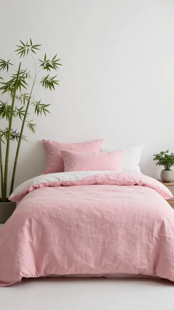 Craft a serene and peaceful environment with pink linen bedding that embodies a modern zen approach. Focus on simplicity, natural materials, and a calming color palette that promotes mindfulness. Incorporate elements like bamboo, stone, and soft textiles to elevate the tranquility of your retreat.