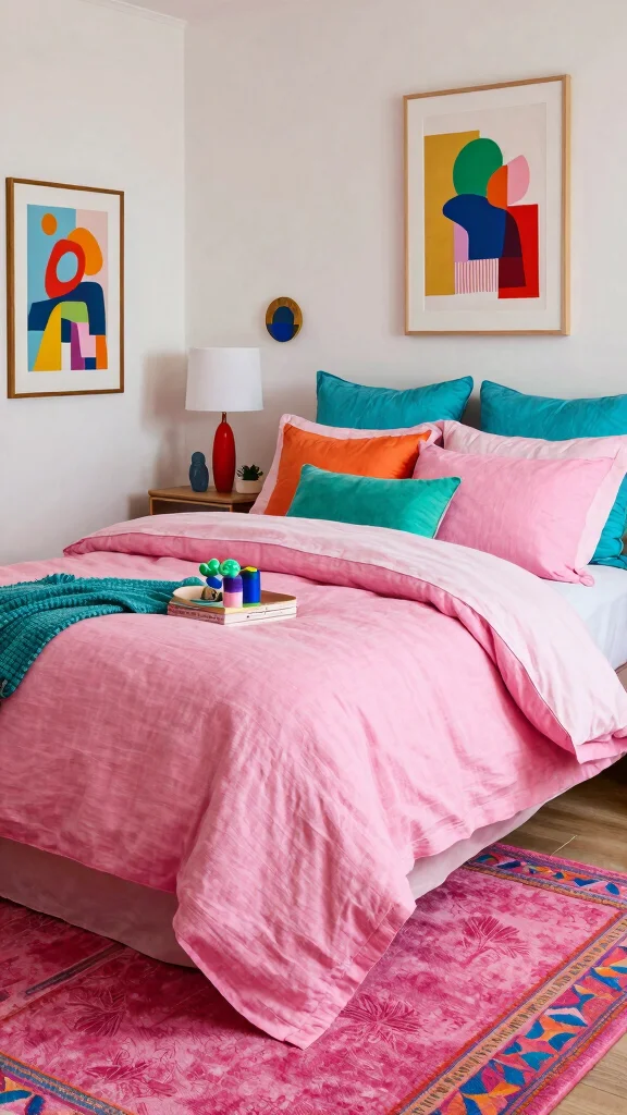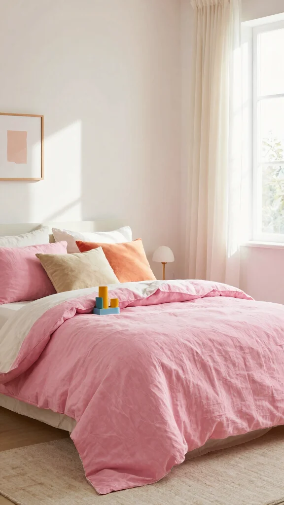 Energize your bedroom design with vibrant accessories that complement your pink linen bedding. Choose bold hues like deep greens, coral, or teal to contrast beautifully with the softness of pink. This approach creates an exciting visual dynamic while maintaining a cohesive feel.