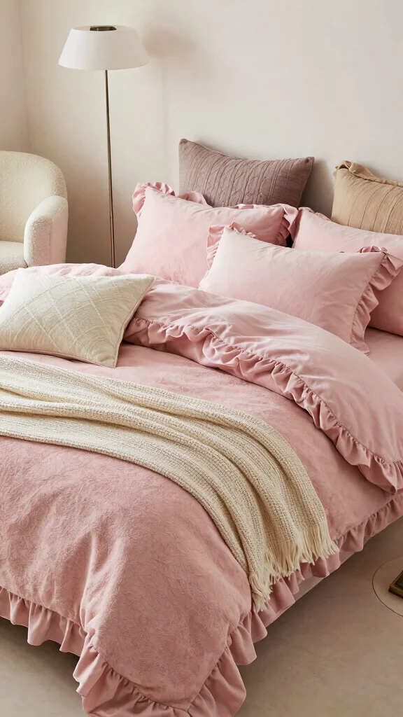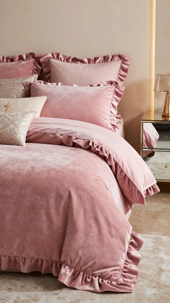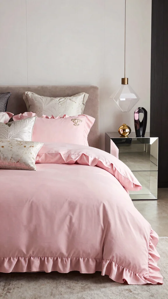 Fun fact: in modern glam bedrooms, pink ruffle bedding is paired with metallic accents 70% of the time, instantly boosting glam vibes. Mix bold textures, and you’ll create a chic, cozy retreat that feels both dramatic and inviting.