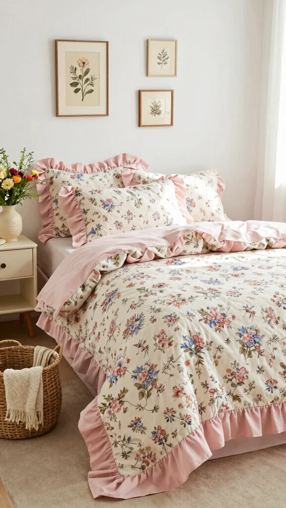 ❝Embrace cottage chic by layering natural cottons and linens with soft pink ruffle bedding. Add vintage finds and thrifted textures to create a cozy countryside vibe you can actually live in. Choose breathable fabrics and simple, timeless pieces for comfort.