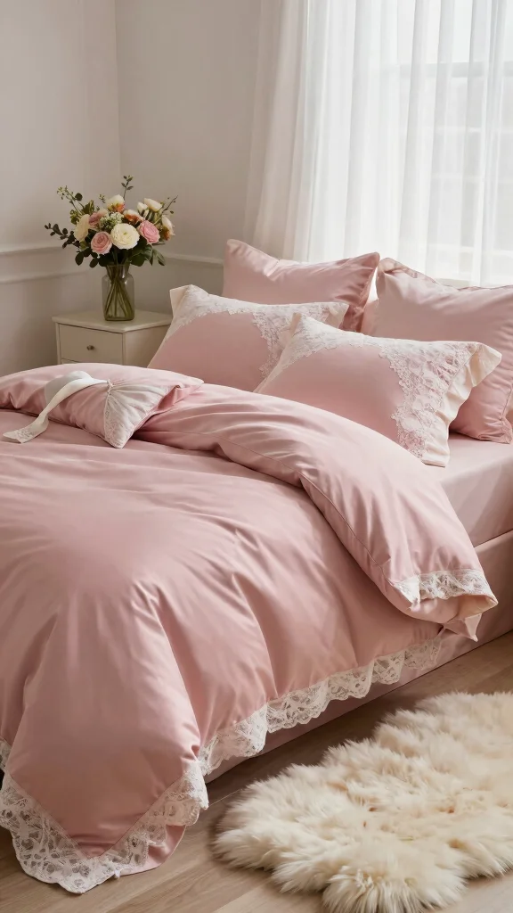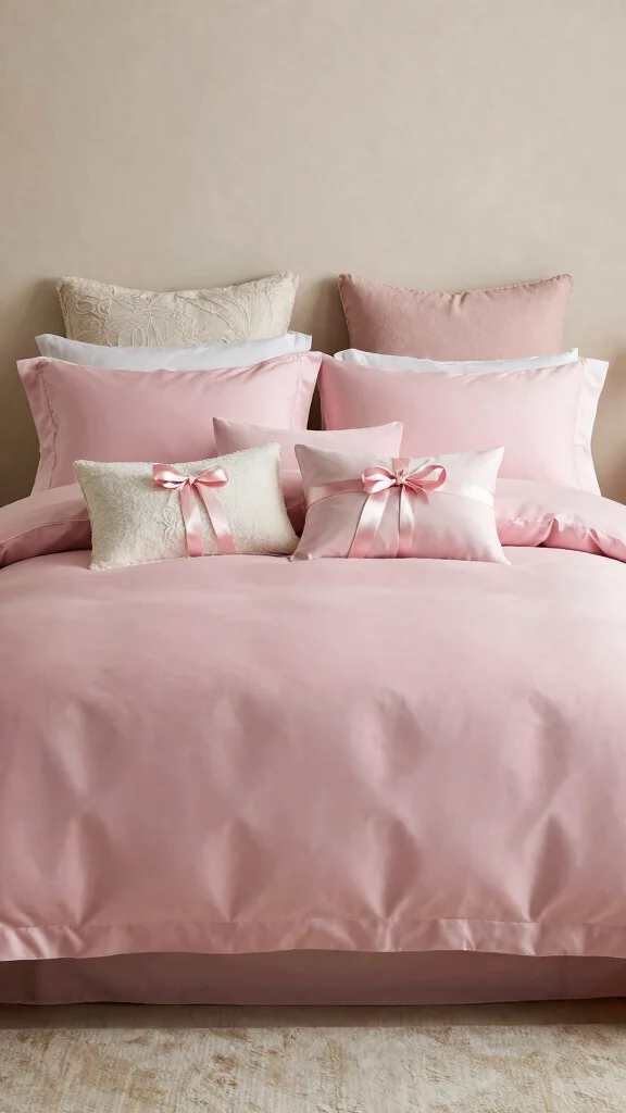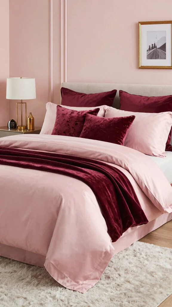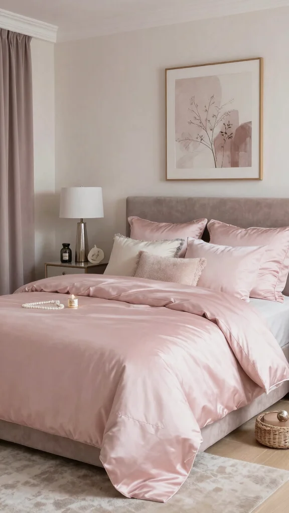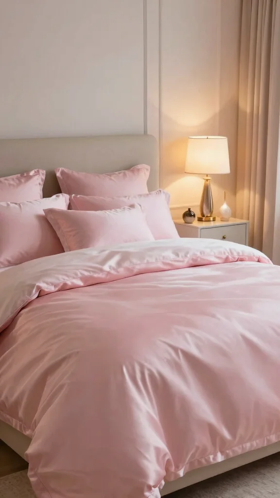 Did you know blush pink satin bedding paired with velvet accents can boost a room’s warmth by up to 40%? The look blends romance with luxe texture, and a burgundy velvet throw instantly elevates the mood. It’s practical, too—layer plush pillows for instant coziness.